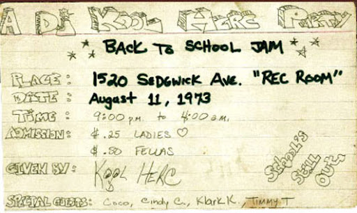 根據記錄,1973年的8月11日, DJ KOOL HERC 在當時舉行了第一個 Hip Hop 的活動, 參加者還有 Grandmaster Caz,